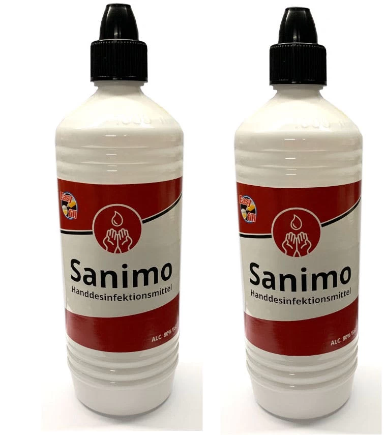 2x 1000ml Sanimo Handdesinfektionsmittel – Anwendungsfertig – Nach Rezept Der WHO Desinfektionsmittel Hände Nachfüllflasche