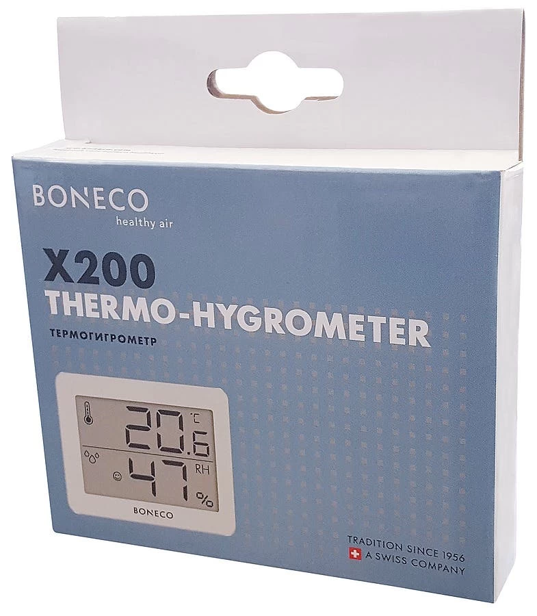 Digitale Anzeige der Raumtemperatur und relativen Luftfeuchtigekeit.