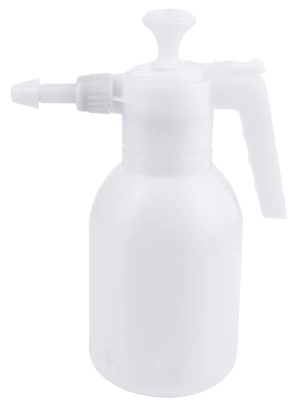 Drucksprühgerät, lebensmittelgeeignet, aus weißem lebensmittelgeeigneten Polyethylen, für dünnflüssige Lösungen (kein Öl), mit Handpumpe zum Aufbauen von maximal 0,2 MPa (2 bar) Arbeitsdruck, mit verstellbarer Düse, Sicherheitsventil und Standfuß