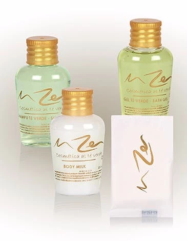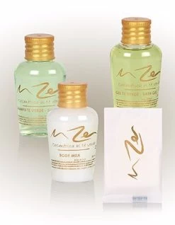Muster-Set, bestehend aus Duschgel, Shampoo und Body Lotion im Flacon 35ml und einer Handseife.