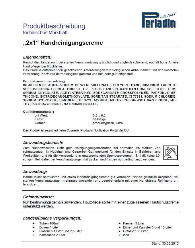 Enthält Reibekörper aus Polyurethanmehl und keine Lösungsmittel. Sie ist besonders gründlich und ergiebig: Schon 1-2 ml genügen meist für die