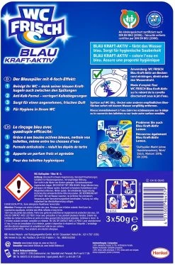 Dank der Blaue-Wasser-Kugeln erhält WC Frisch Blau Kraft-Aktiv sichtbar die Sauberkeit und Frische Ihrer Toilette sogar zwischen den Spülungen. Aber wie? Der 4-fach-Effekt reinigt Ihr WC mit jeder Spülung, verringert Kalkablagerungen, sorgt für einen angenehmen Blütenduft und für hygienische Sauberkeit in Ihrem WC.