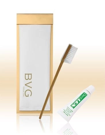 Zahnpflegeset 2-Teilig, bestehend aus Zahnbürste und Zahnpasta in der Tube.